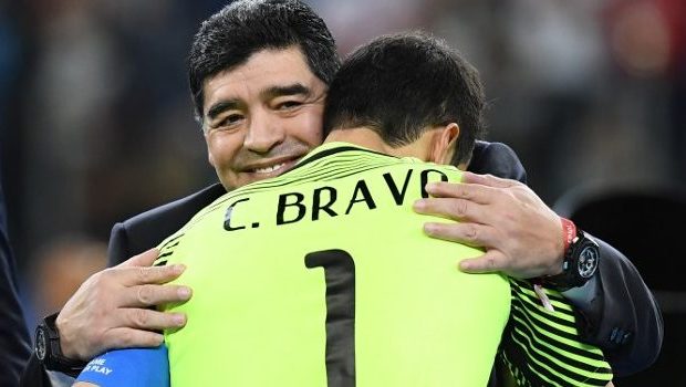 El ’10’ le dio la mano, lo abrazó y cuando el portero se iba retirando, Maradona lo mira y le consulta si está bien tras perder la final ante Alemania. Bravo se devolvió y sostuvieron un diálogo que rápidamente fue interpretado en las redes sociales.